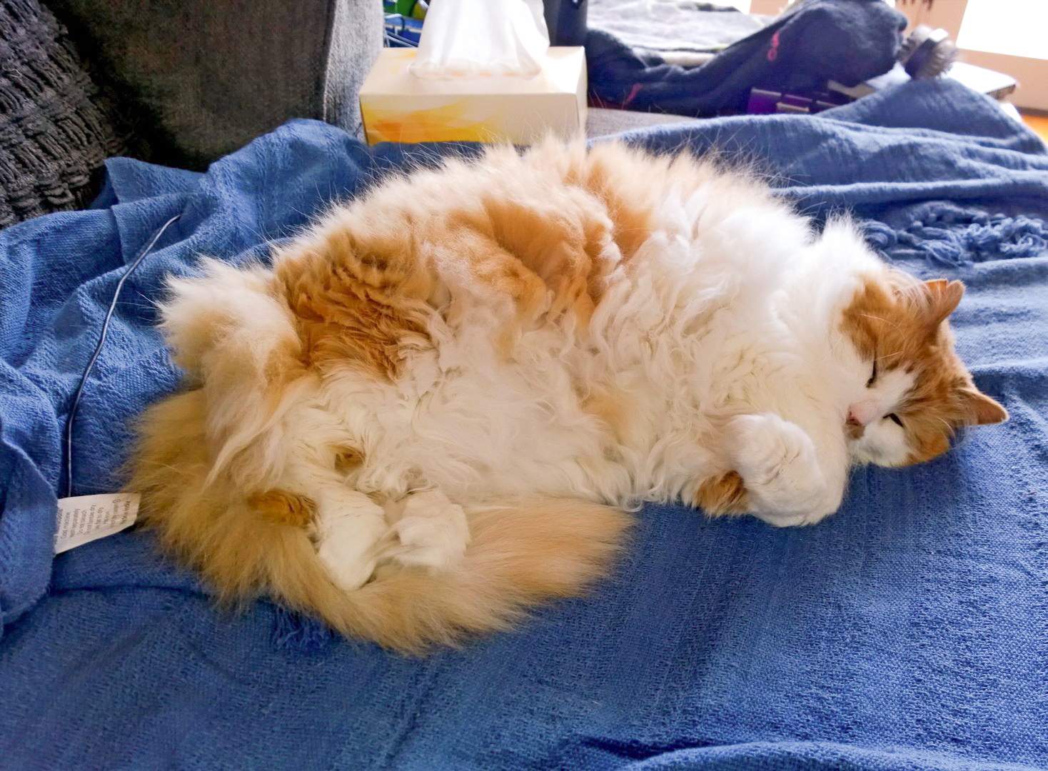 But under those luscious locks is a fair lot of padding, and my vet said he could use to lose a few hundred grams — or about a 10th of his current body weight.